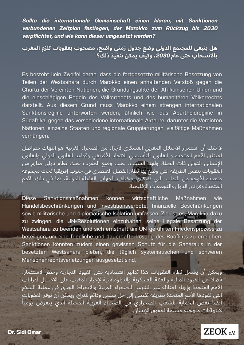 Sollte die internationale Gemeinschaft einen klaren, mit Sanktionen verbundenen Zeitplan festlegen, der Marokko zum Rückzug bis 2030 verpflichtet, und wie kann dieser umgesetzt werden?