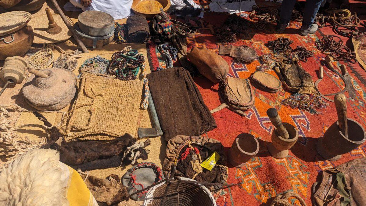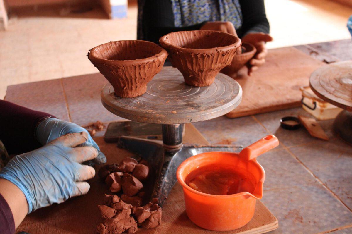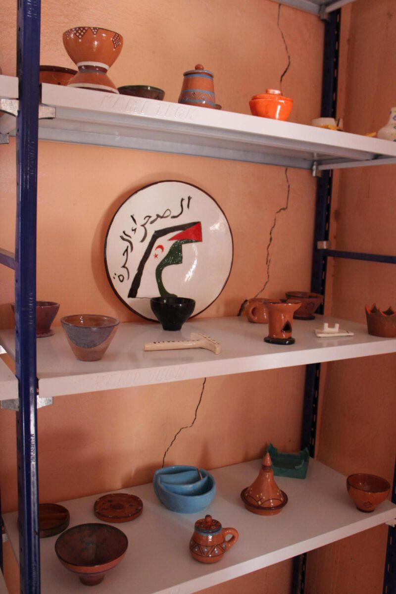 Auch das traditionelle Handwerk ist ein wesentlicher Bestandteil saharauischer Kultur. Die Verbindung von handwerklicher Präzision und klarer Ästhetik zeigt sich besonders in der Verarbeitung von Leder zu Taschen, Gürteln, Wasserbehältern und Schmuck. Im Camp Laayoun bewahren Frauen dieses Erbe lebendig. In Keramikwerkstätten entstehen Gefäße, Schalen und Kunstobjekte, die altes Wissen mit neuer Ausdruckskraft vereinen. Jedes Werk erzählt von Kontinuität, Kreativität und Selbstermächtigung, denn Kultur ist auch eine Form des Widerstands.