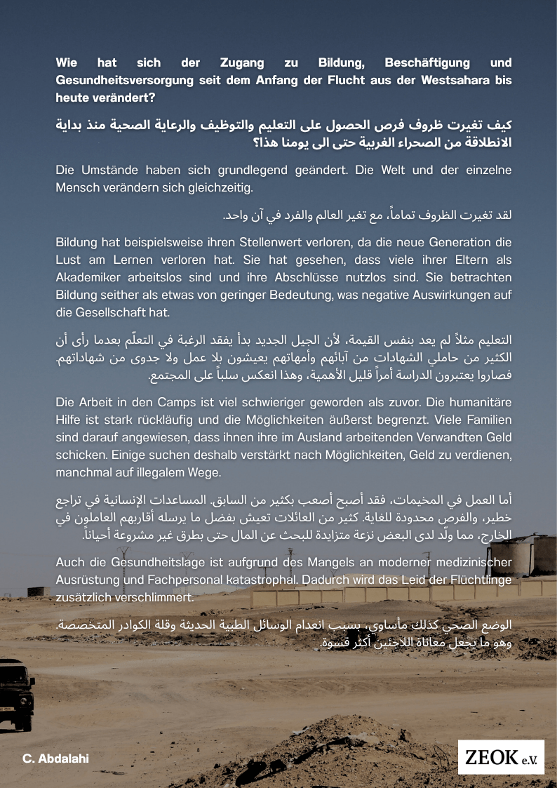 3. Wie hat sich der Zugang zu Bildung, Beschäftigung und Gesundheitsversorgung seit dem Anfang der Flucht aus der Westsahara bis heute verändert?