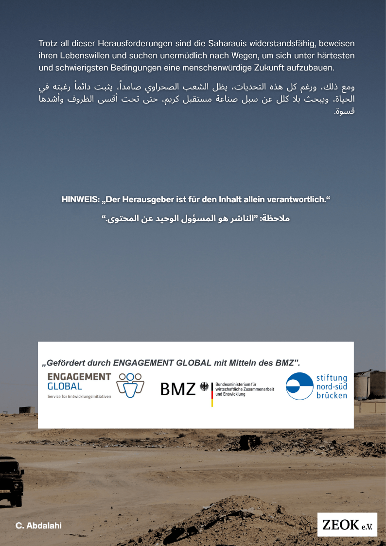 Trotz all dieser Herausforderungen sind die Saharauis widerstandsfähig, beweisen ihren Lebenswillen und suchen unermüdlich nach Wegen, um sich unter härtesten und schwierigsten Bedingungen eine menschenwürdige Zukunft aufzubauen.